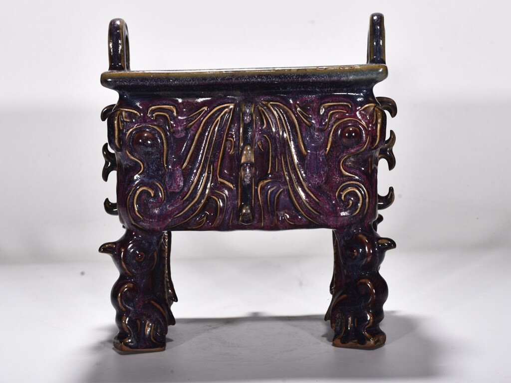 - ■TC101■宋代 鈞窯曜変 紫釉鳳鳥鼎炉 時代物 古玩 唐物 古陶磁器■