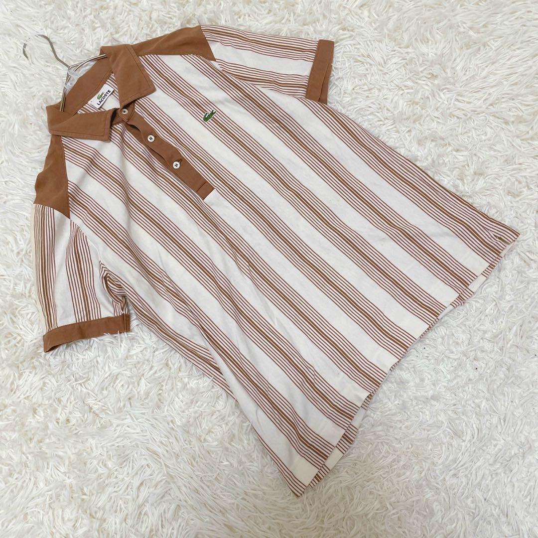 - 日本製 『ラコステ』 (2) マルチストライプ 半袖ポロシャツ 配色カラー ロゴ