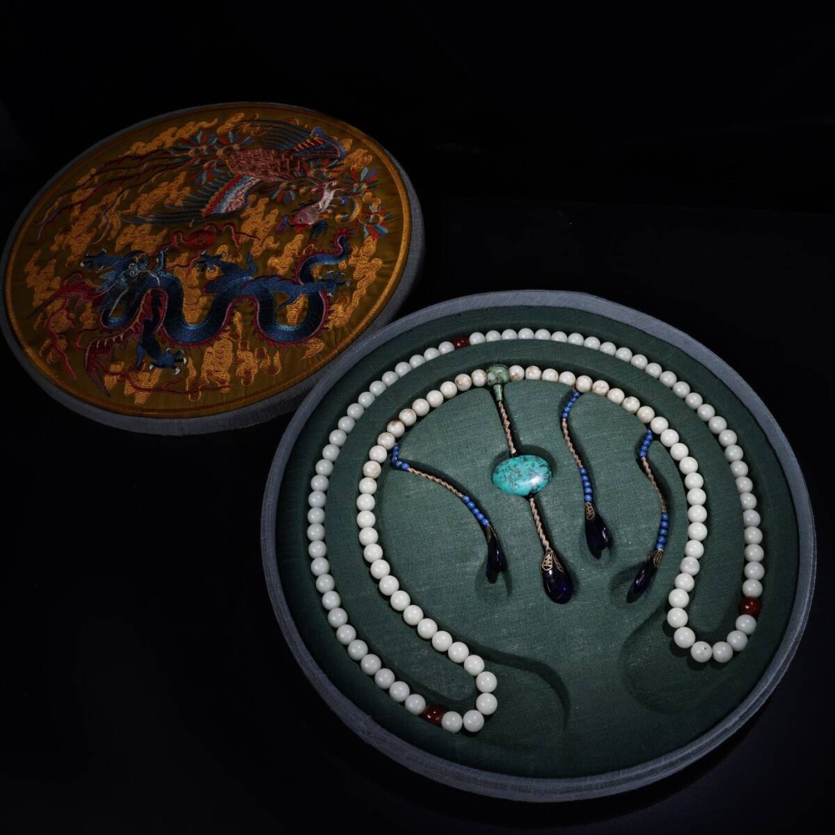 - 『館蔵珍品 夜光石細密彫 朝珠 龍鳳紋 箱付 根付 裝身具』稀少珍蔵品 古賞物 貴重物品 収蔵品 中国古美術 時代物 古董品