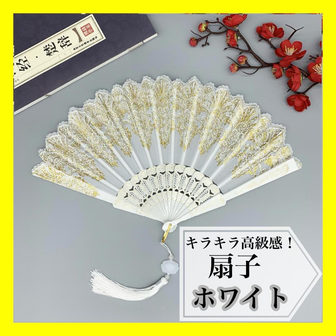 - ホワイト 扇子 ラメ レース 豪華 ゴージャス ダンス アバニコ 高級感 舞踊 ベリーダンス フラメンコ バレエ 普段使い