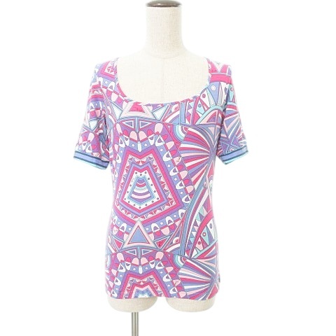 - エミリオプッチ EMILIO PUCCI 美品 プッチ柄 カットソー 半袖 トップス ストレッチ素材 薄手 国内正規 イタリア製 XSサイズ ピンク スカイ