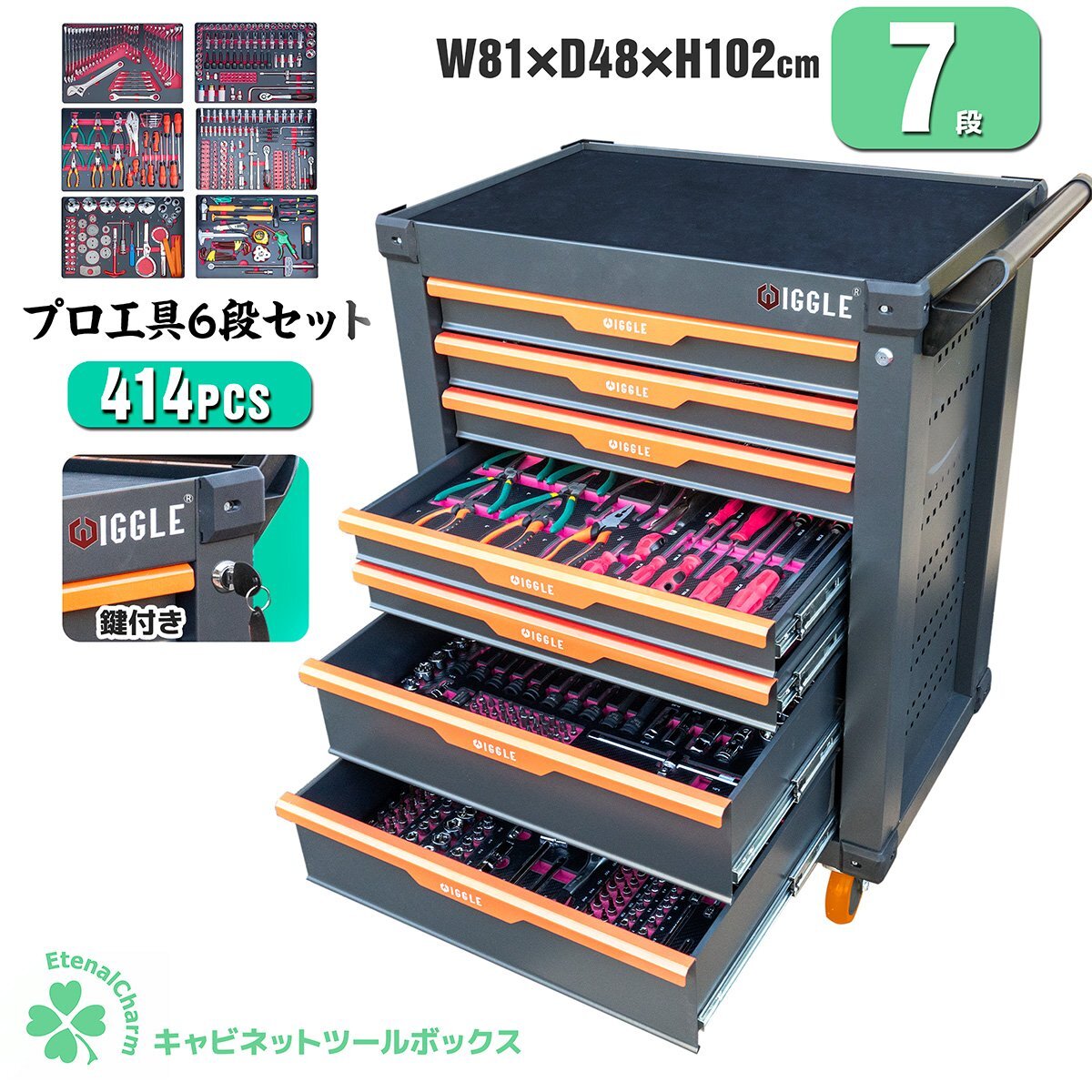 - 【営業所留め】ツールボックス 7段 キャビネット 414点豪華工具セット 工具箱 工具 ガレージ 深浅型 たっぷり収納 ロック鍵付き 動画あり