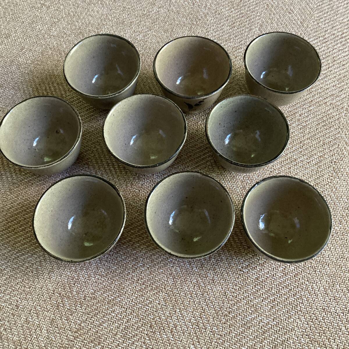 - 唐津焼 草花模様 9個セット 印あり 上直径約7.5cm 高さ約6cm 中古美品