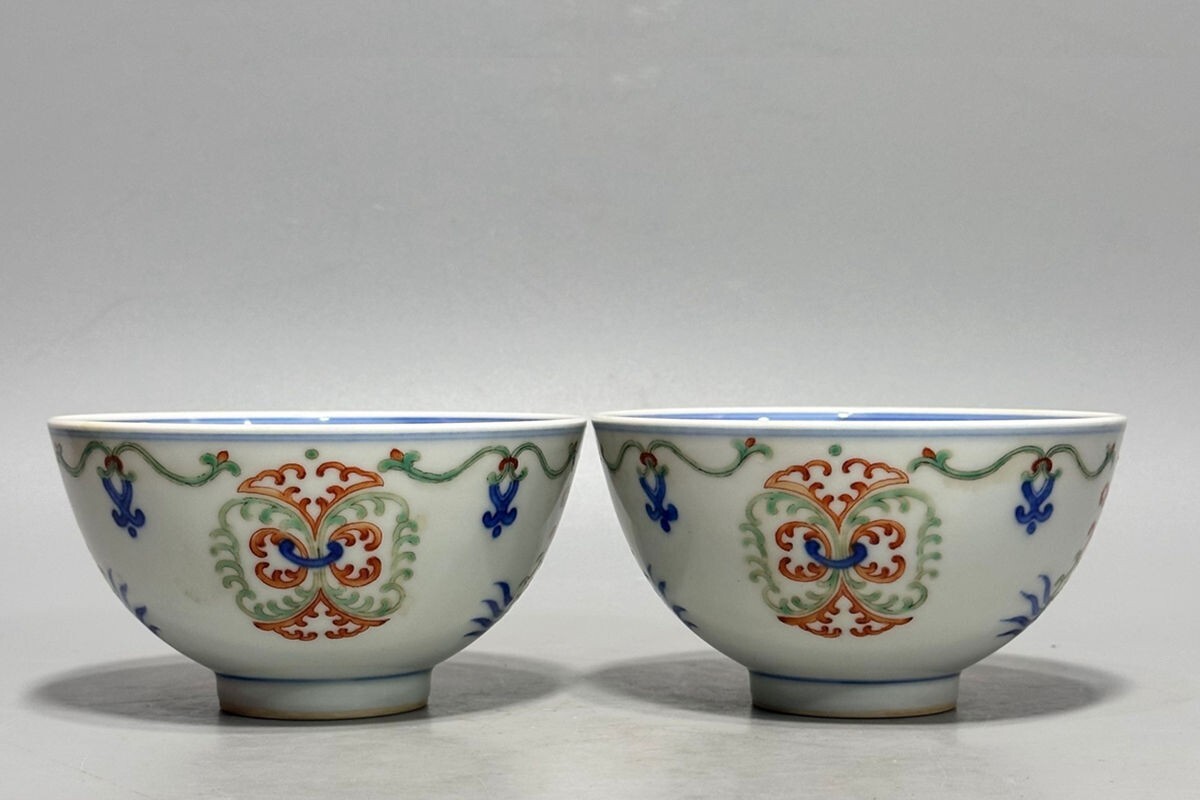 - 「清 雍正年製 陶磁器 青花鬥彩冷冬紋 碗一対」染付 置物 擺件 古賞物 中国古美術 旧蔵出