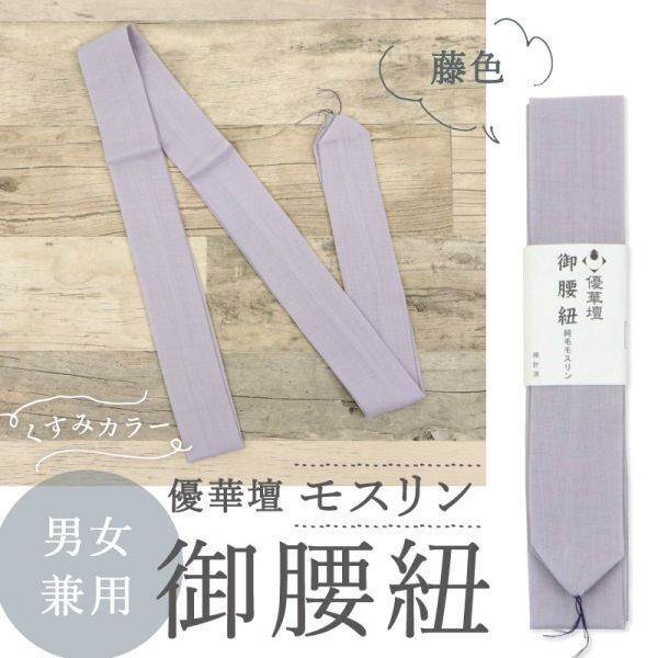- 【 優華壇 カラー 御腰紐 】 純毛モスリン 日本製 井登美 くすみカラー パープル 男女兼用 広幅 こしひも 腰ひも 【 藤色 】