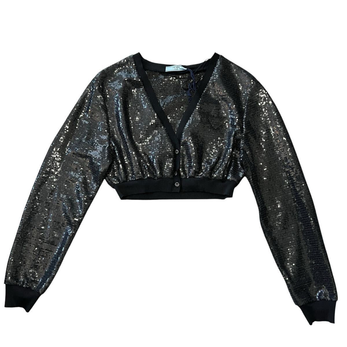 - PRADA 2022SS RAF SIMONS ブラック スパンコール装飾 クロップドトップス 40 新品未使用タグ付き