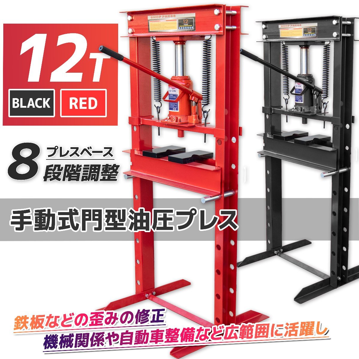 - 送料無料 12t 油圧プレス ショッププレス 門型プレス機 12トン 作業幅0~650mm 自動車・バイク整備 鉄板の歪み修正に!! 赤 /黒選択