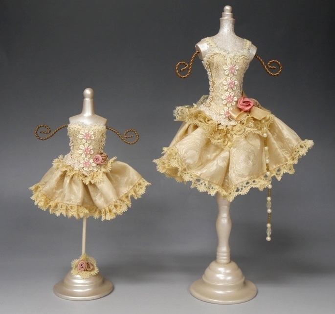 > M581Mちょる☆アンティーク調のレースドレス・トルソー型アクセサリースタンド 合わせて2点セット インテリアディスプレイ ロココ調