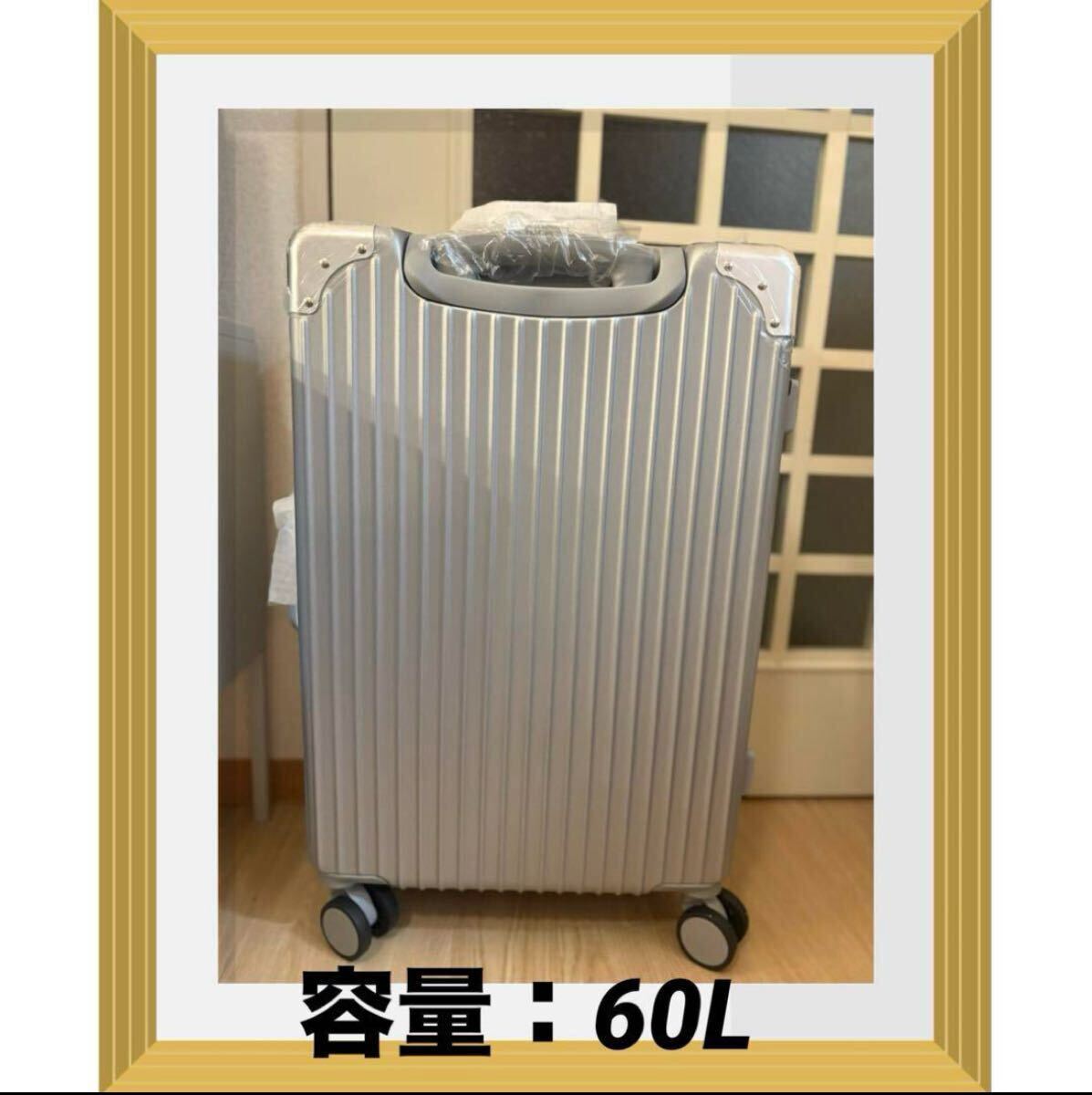 - スーツケース 60L;L:62x42x26cm【ボックス収納サイズ】容量60L シルバー 軽量 旅行