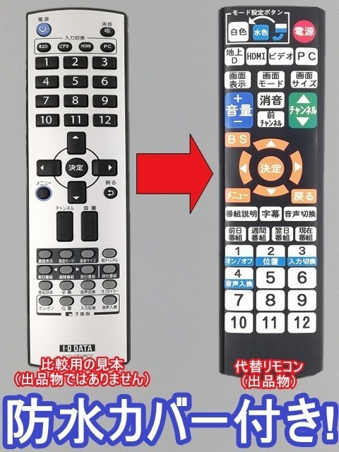 - 【代替リモコン50】防水カバー付 I.O DATA LCD-DTVRC2 互換 送料無料 (LCD-DTV222XBR LCD-DTV221XBR用) アイ・オー・データ