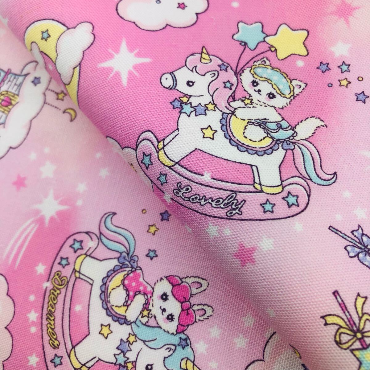 - 50cm 日本製 ユニコーン オックス生地 バニラポップ ピンク コスモテキスタイル 夢かわ