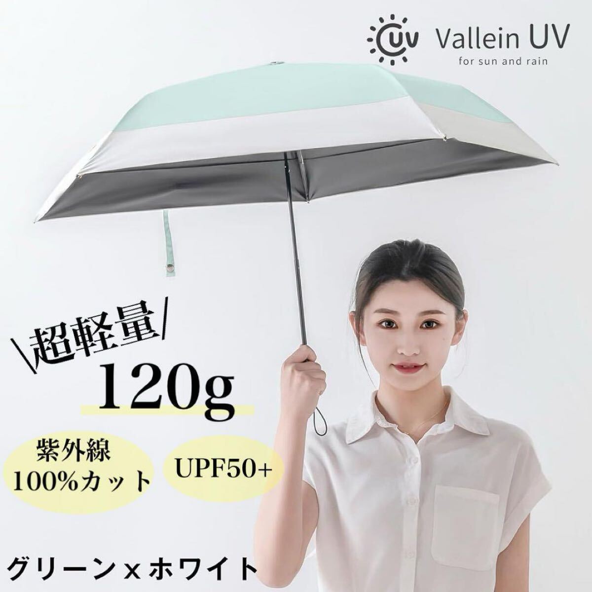 - 日傘 折りたたみ 超軽量 紫外線100%カット 遮光100% upf50+ 晴雨兼用 コンパクト パステルグリーン シンプル 無地