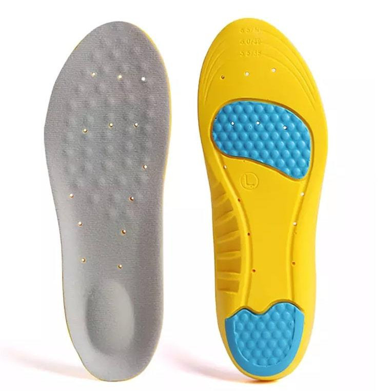 - 【インソール イエロー×グレー Mサイズ】スポーツ 衝撃吸収 中敷き 土踏まず 足底筋膜炎 かかと 扁平足 疲れない アーチサポート 健康