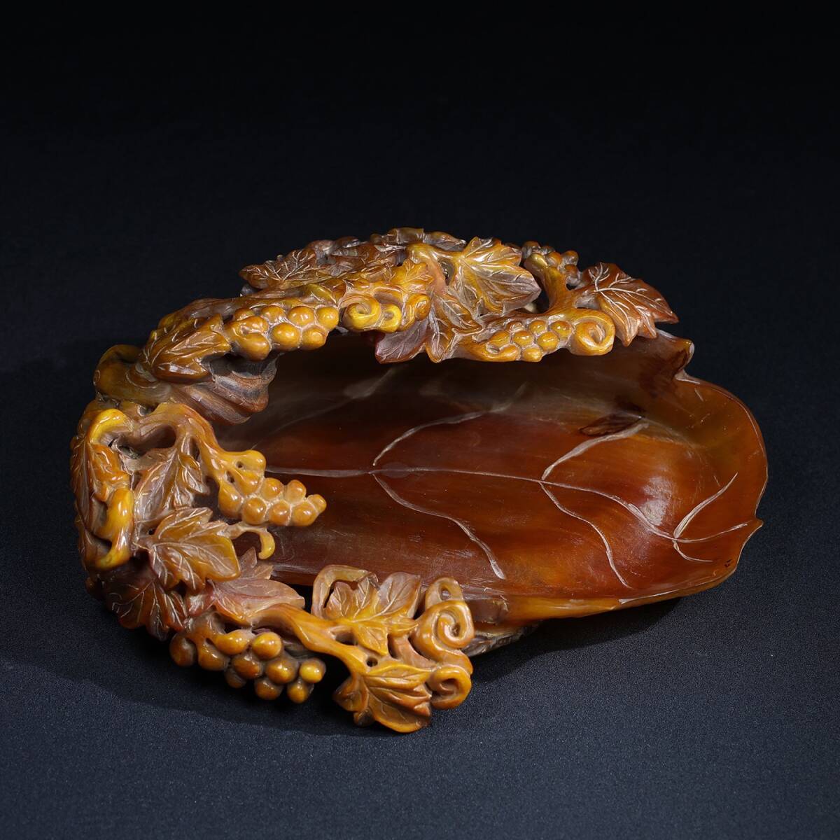 - 『館蔵珍品 角材細密彫 松鼠葡萄筆洗 置物 賞物』稀少珍蔵品 古賞物 貴重物品 収蔵品 中国古美術 時代物 古董品