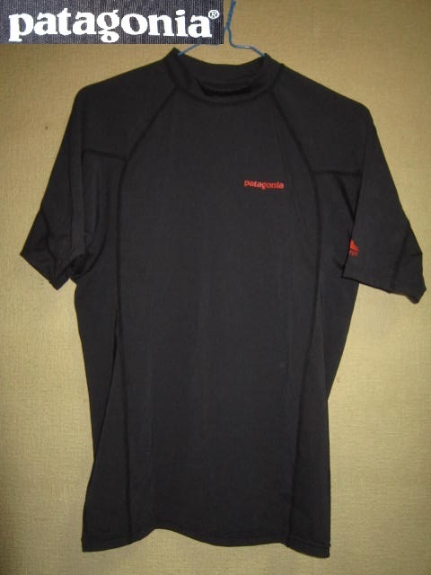 > 超レア!patagonia パタゴニア UPF50 半袖 ラッシュガード 黒/赤 M