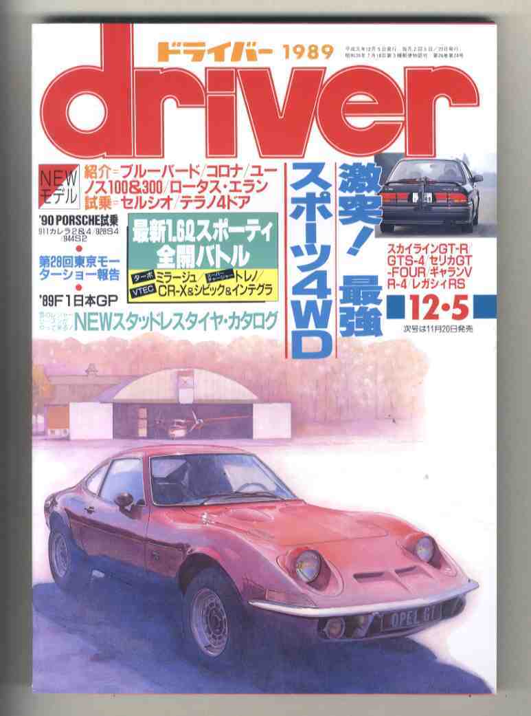 書名/記事: 89.12.5 ドライバーdriver/最強スポーツ4WD - スカイラインGT-R/GTS-4/セリカGT-FOUR/ギャランVR-4/レガシィRS、ブルーバード、コロナ、ユーノス100&300、ロータスエラン、セルシオ、テラノ4ドア、最新1.6リッタースポーティ全開バトル - ミラージュ/トレノ/CR-X&シビック&インテグラ、第28回東京モーターショー報告、'89F1日本GP、...