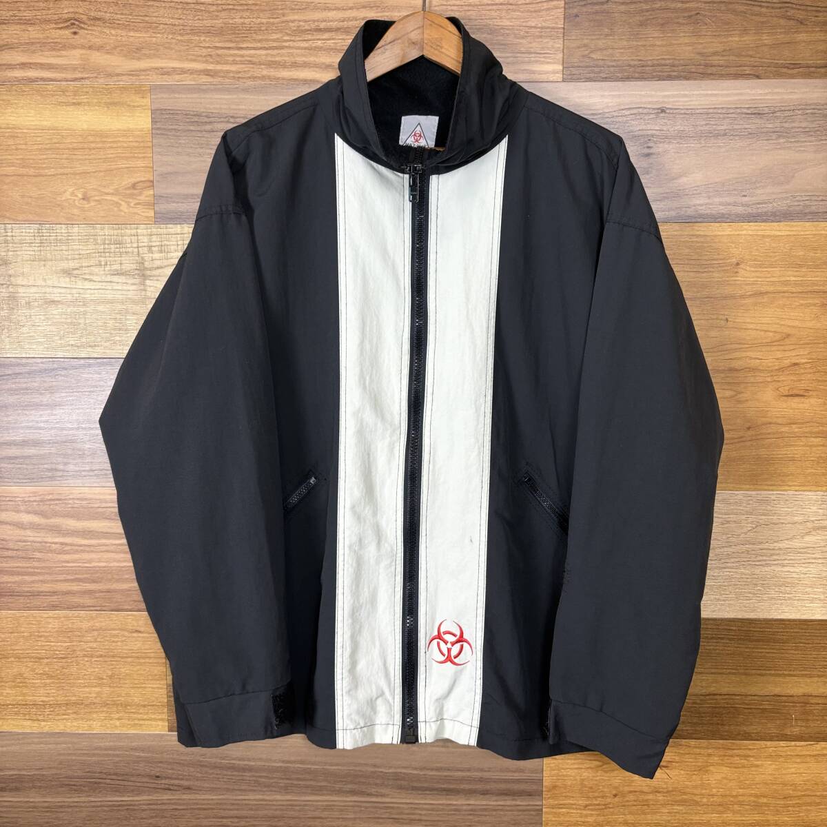 > USA製 90s HAZ-MAT BIOHAZARD ロゴ ツートン切り替え ナイロン ジャケット サイズ メンズ M アメリカ製 90年代 VINTAGE 古着 r25071769