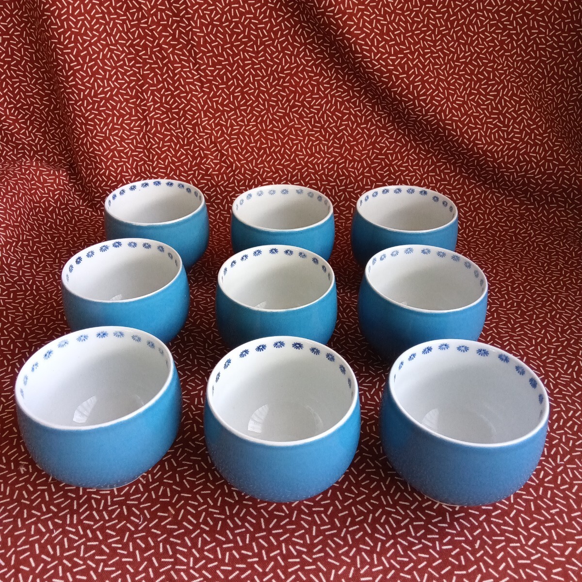 - 中古☆ 湯呑 有田焼 アンティーク 陶器 骨董 昭和 レトロ 青 セット 来客 花 煎茶 茶器 和食器 水色