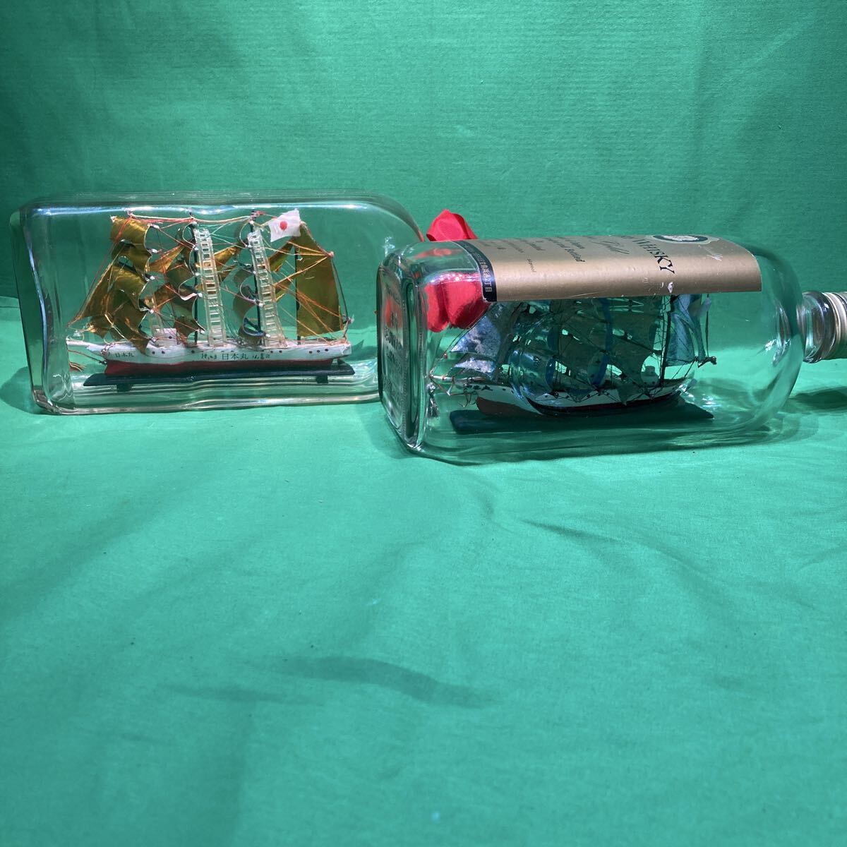 - ボトルシップ 帆船 ガラスボトルシップ ウイスキー瓶 インテリア 雑貨 置物 オブジェ 中古品 現状品