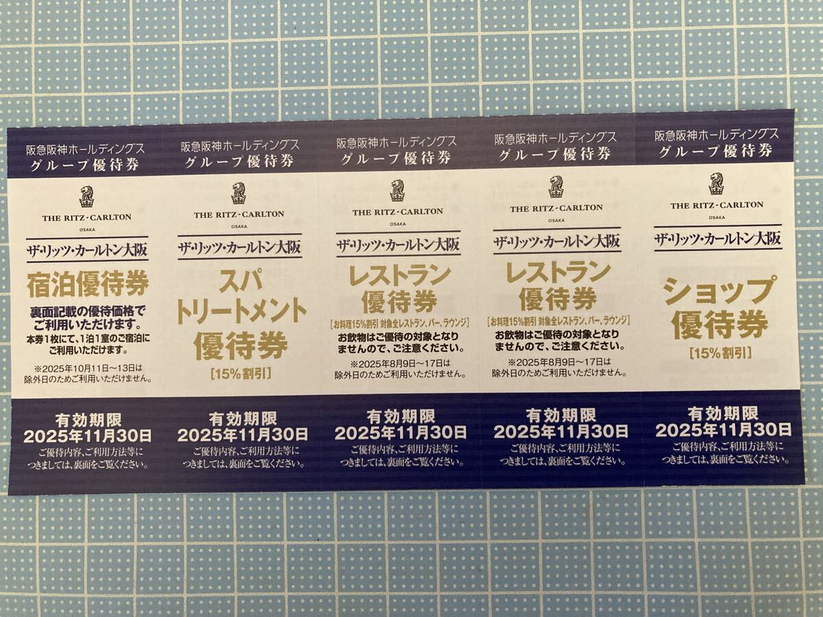 - 40円 即決! 迅速発送◆ザ・リッツ・カールトン大阪 宿泊優待券 レストラン優待券 ショップ優待券 5枚セット●11月30日まで有効◆送料85円~