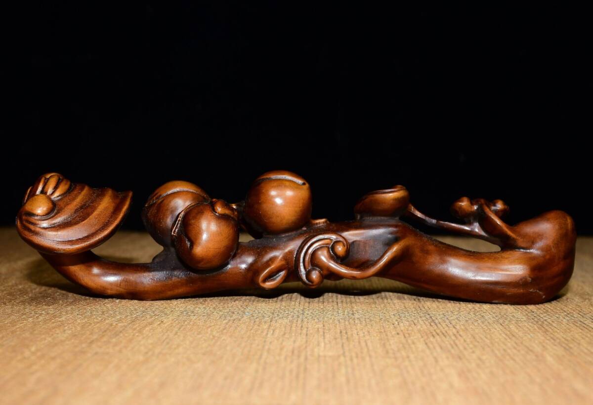 - 蔵友旧蔵出 小葉黄楊木製 細密彫 壽桃如意 筆架 文房具 供養品 置物擺件 稀少珍藏品 古賞物 中国古玩 中国古美術品