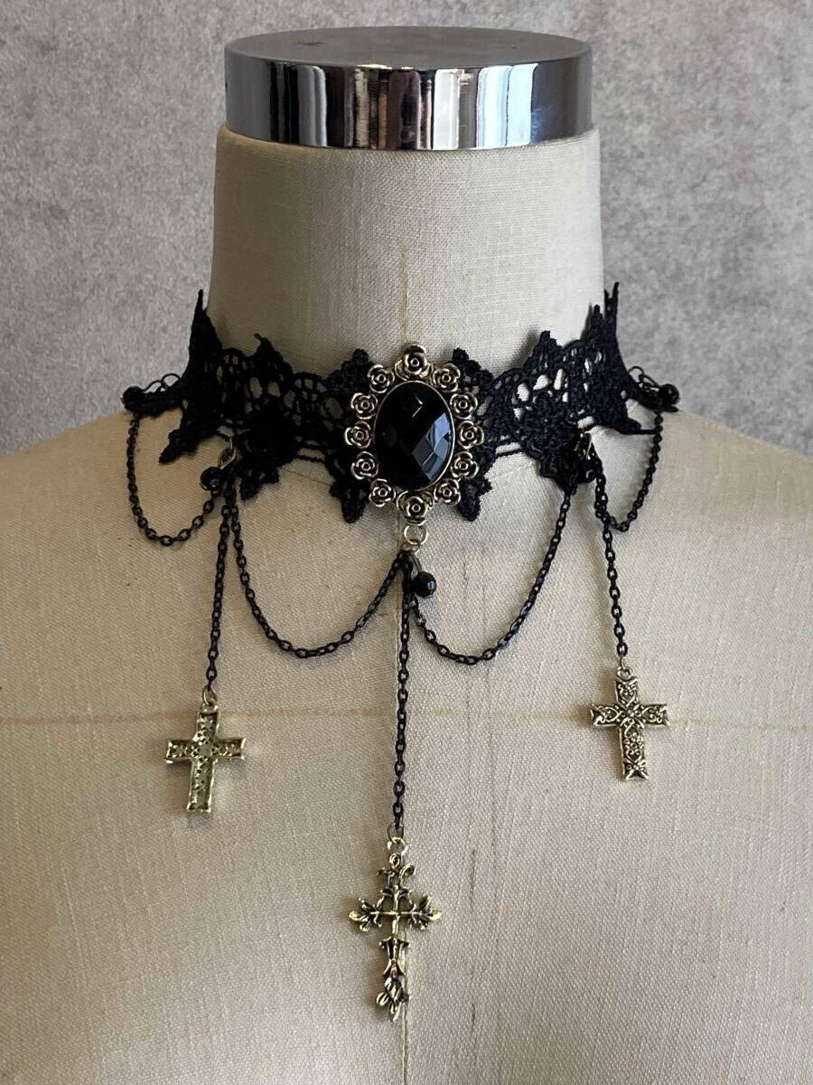 - ★送料無料★「ゴスロリ/スチームパンク チョーカー レース/ブラック 十字架/クロス タイプ24E」tface-g 【タグ:アクセサリー】