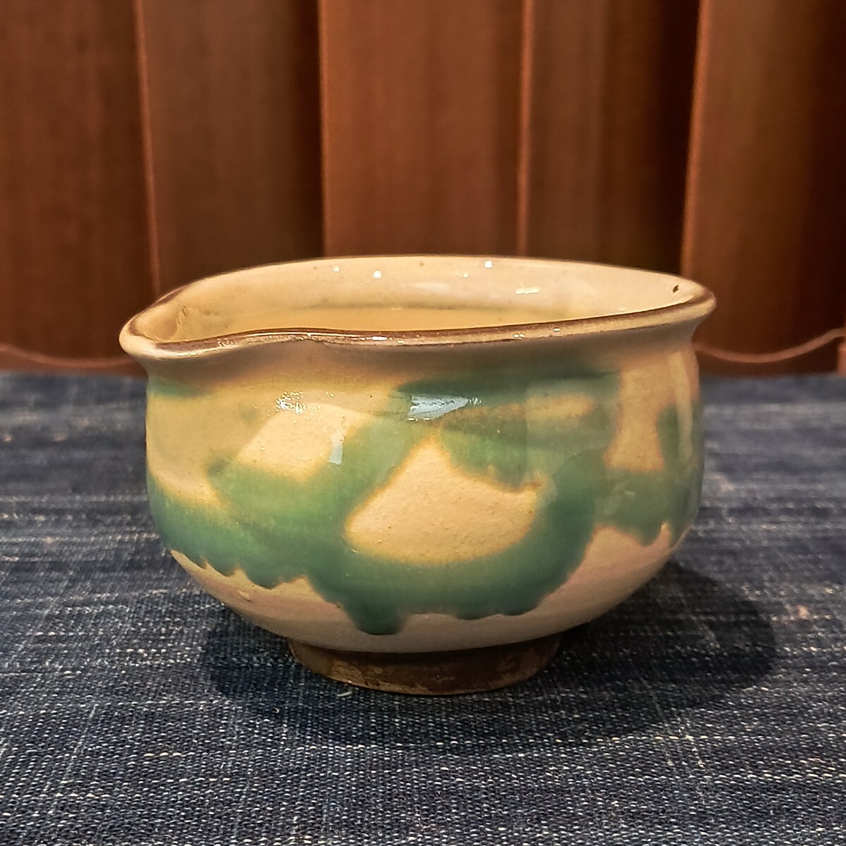 - 小鹿田焼 柳瀬朝夫窯 緑釉流し 片口 検) 柳瀬裕之 古道具 民芸 小鉢 湯冷まし 酒器