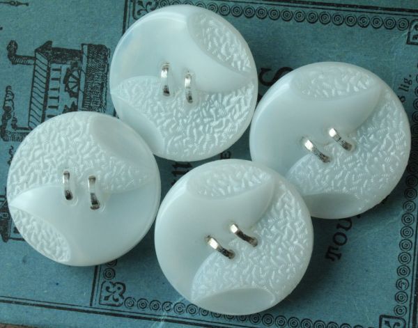 フランスから届いた、うっすらと透け感のある美しいホワイトガラスボタン4個です。滑らかな光沢と、繊細な模様が素敵です。