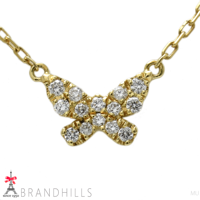 - アーカー ダイヤモンド 0.06ct バタフライパヴェ ネックレス K18金 750YG イエローゴールド AHKAH 極美品