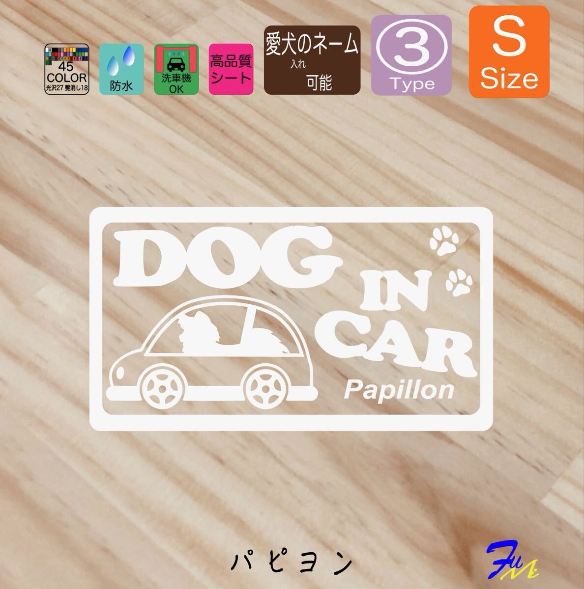 - DOG IN CAR パピヨン ステッカー 03 Sサイズ 愛犬名 入れられます 全45色 #dFUMI #dcFUMI #dcFUMIパピヨン