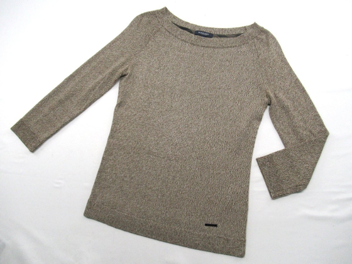 > ☆【B送900円】2121 BURBERRY バーバリー メランジセーター レーヨンニットトップス ボートネック ブラウン系 七分袖 日本製 1