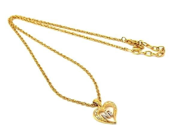 - ■美品■ NINA RICCI ニナリッチ ラインストーン ハート ネックレス ペンダント アクセサリー レディース ゴールド系 DE3893