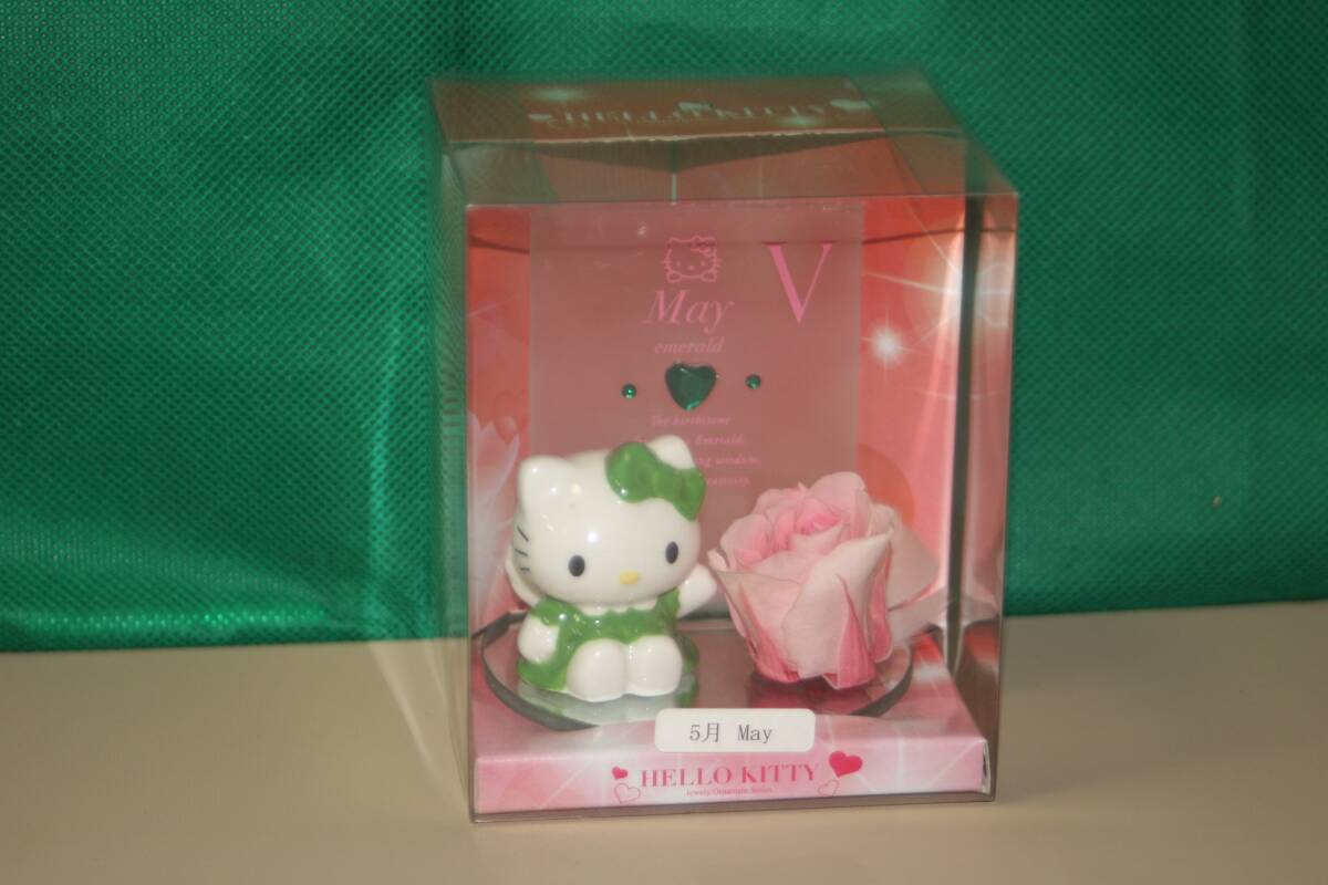 - サンリオ ハローキティ ジュエリー オーナメント シリーズ プリザーブドフラワー 5月 誕生石 エメラルド 背中に翼 陶器フィギュア 2011年