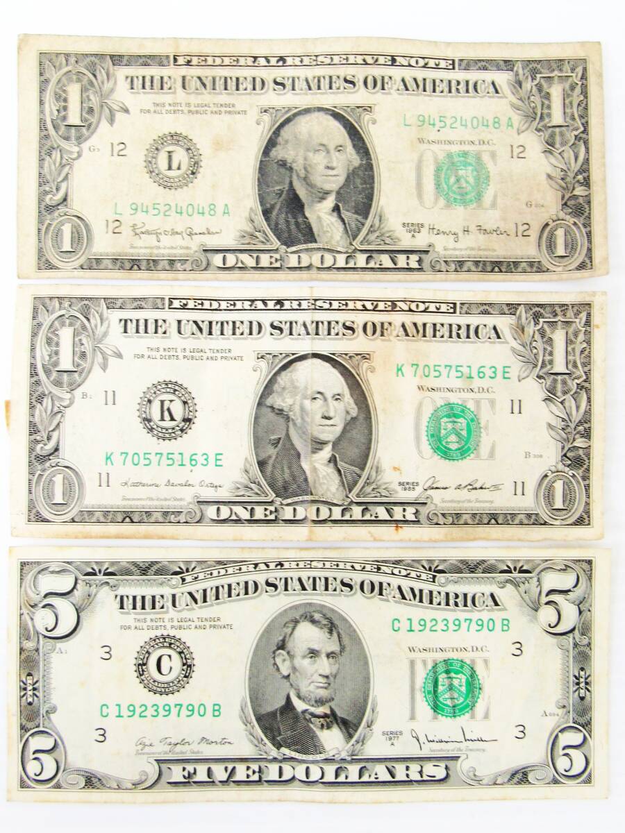 > 外国紙幣 アメリカ 7ドル ドル紙幣 1ドル 2枚 5ドル 1枚 海外 古銭 古紙幣 USA 劣化 ユーズド 現状品 お得 アンティーク kdh