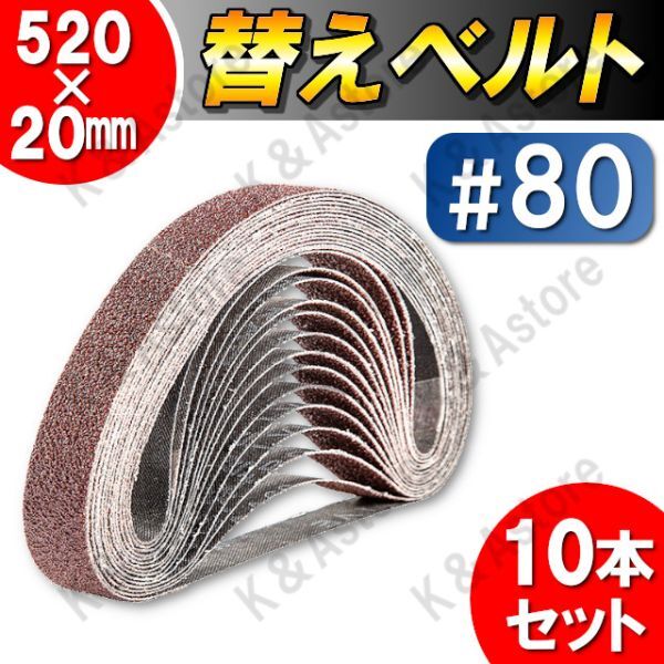 > ベルトサンダー用 替えベルト エンドレスベルト やすり ヤスリ 幅20mm 520mm 研磨 サンドペーパー サンディング 木工 鉄工 DIY 80番 10本
