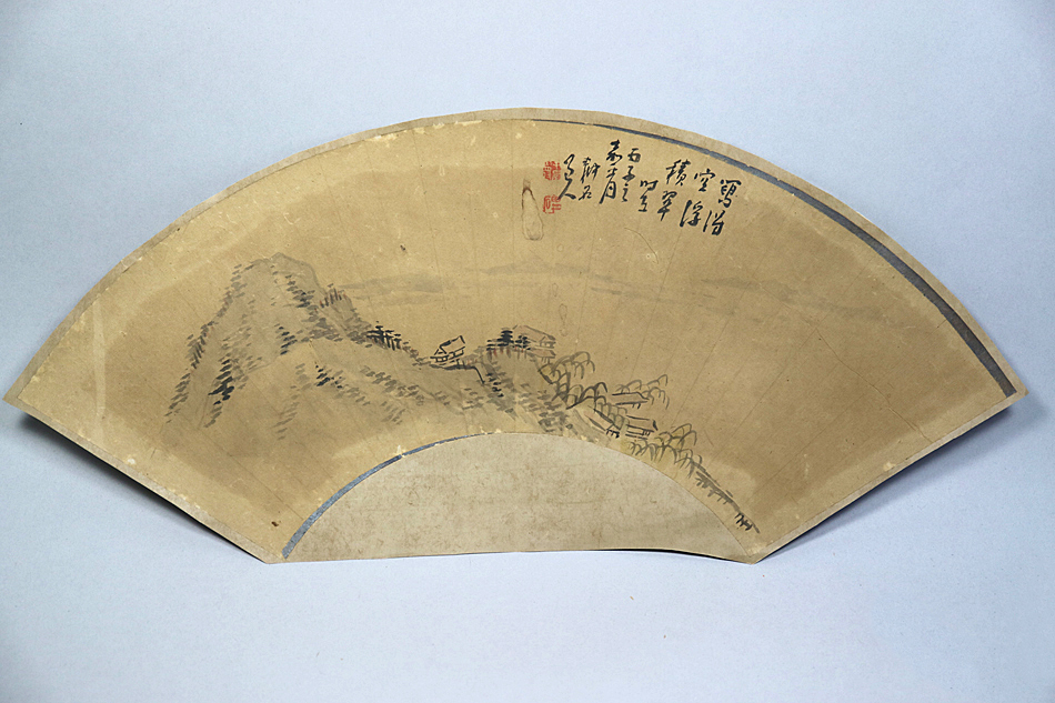 - sg21)「模写」中西耕石 扇面画 山水図 江戸末~明治時代 墨書 紙本 剥がし捲り<文人画 南画 山水画 書