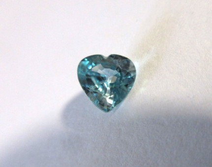 ハート形のブルージルコンです。インクルージョンがありますが、透明感とテリがキラキラしています。低温加熱。
