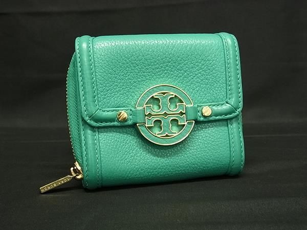 > ■美品■ TORY BURCH トリーバーチ レザー 三つ折り 財布 ウォレット 札入れ 小銭入れ カード入れ レディース グリーン系 DJ8513