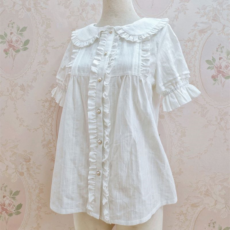 - ロリータ ブラウス 半袖 夏 lolita ロリィタ 甘ロリ かわいい 姫系 白 ピンク パステルカラー フェミニン フリル ゴシック ゴスロリ 衣装