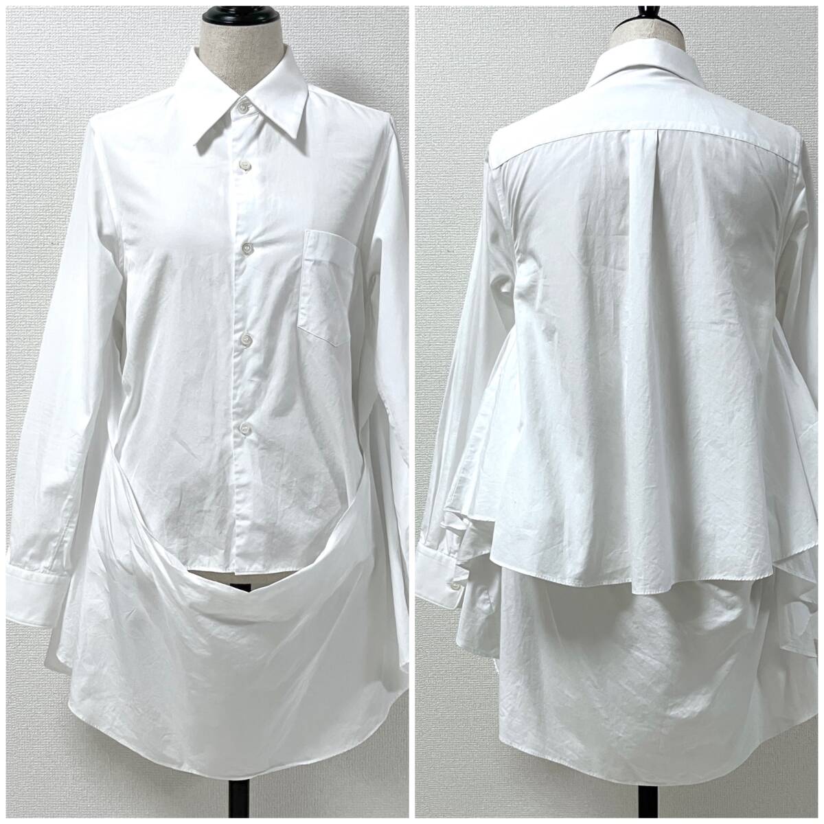 > AD2021 COMME des GARCONS 前後 アシンメトリー フレア 長袖 シャツ ブラウス ホワイト 白 XSサイズ コムデギャルソン archive 5070283