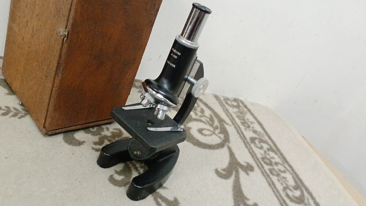 - 顕微鏡 アキレス M-800 詳細不明 Kalnew 理科 生物 学校 教材 観察 観測 昭和 レトロ 光学 単眼 Akires ビンテージ 八王子市 引き取りOK