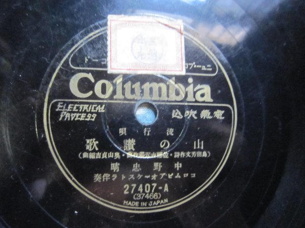 - コロムビア流行歌SP盤605★中野忠晴/山の讃歌★淡谷のり子/春のうたげ★SPレコード