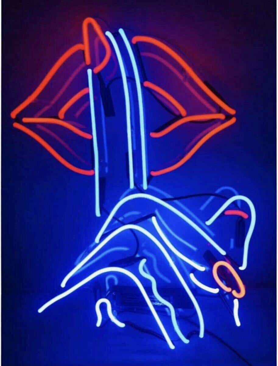 - オリジナル ネオンサイン リップと指のジェスチャー 青赤アート インテリア オーダーメイド
