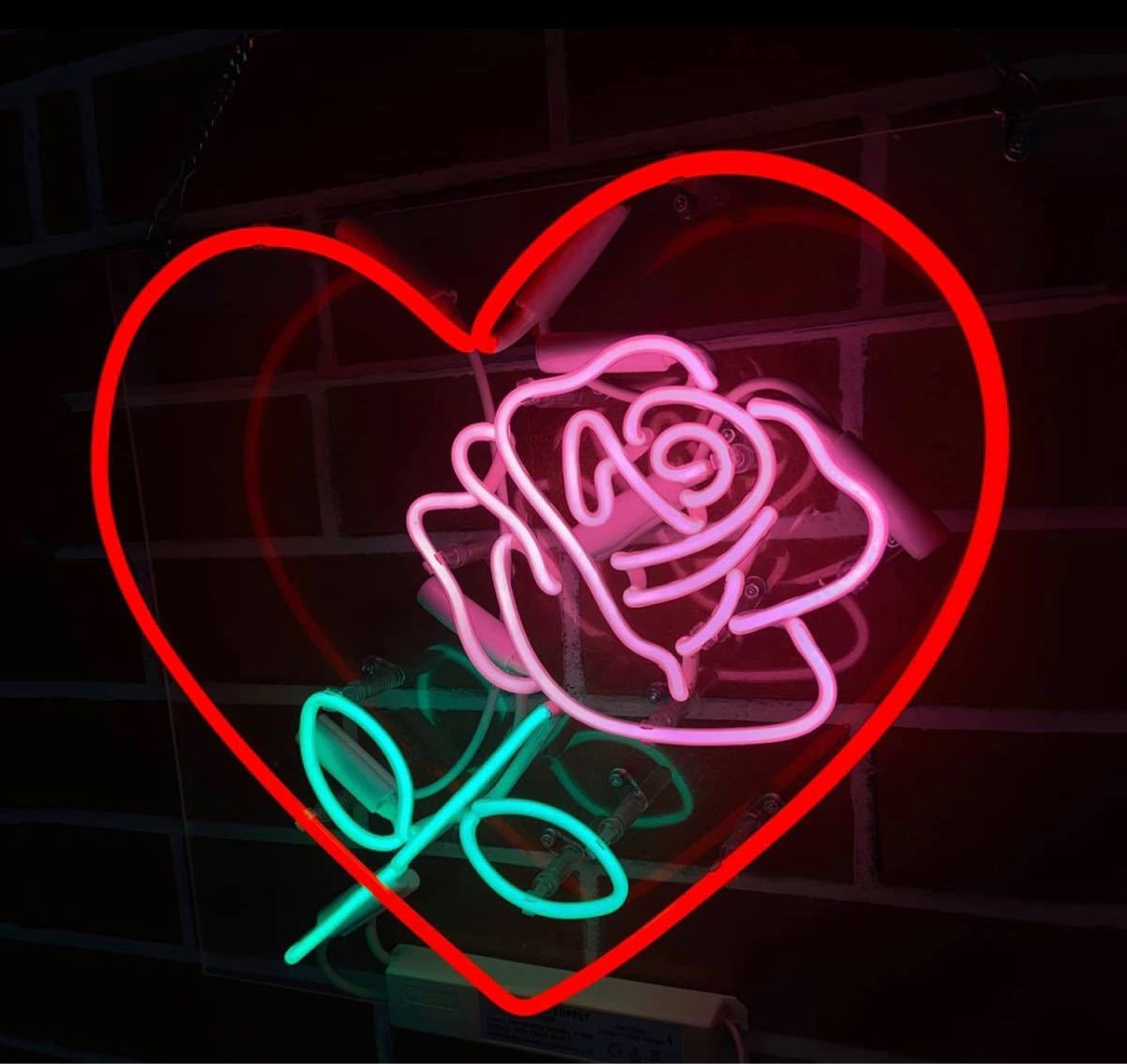 - オリジナル ハート ローズ ネオンサイン ガラス看板 赤ピンク オーダーメイド おしゃれ