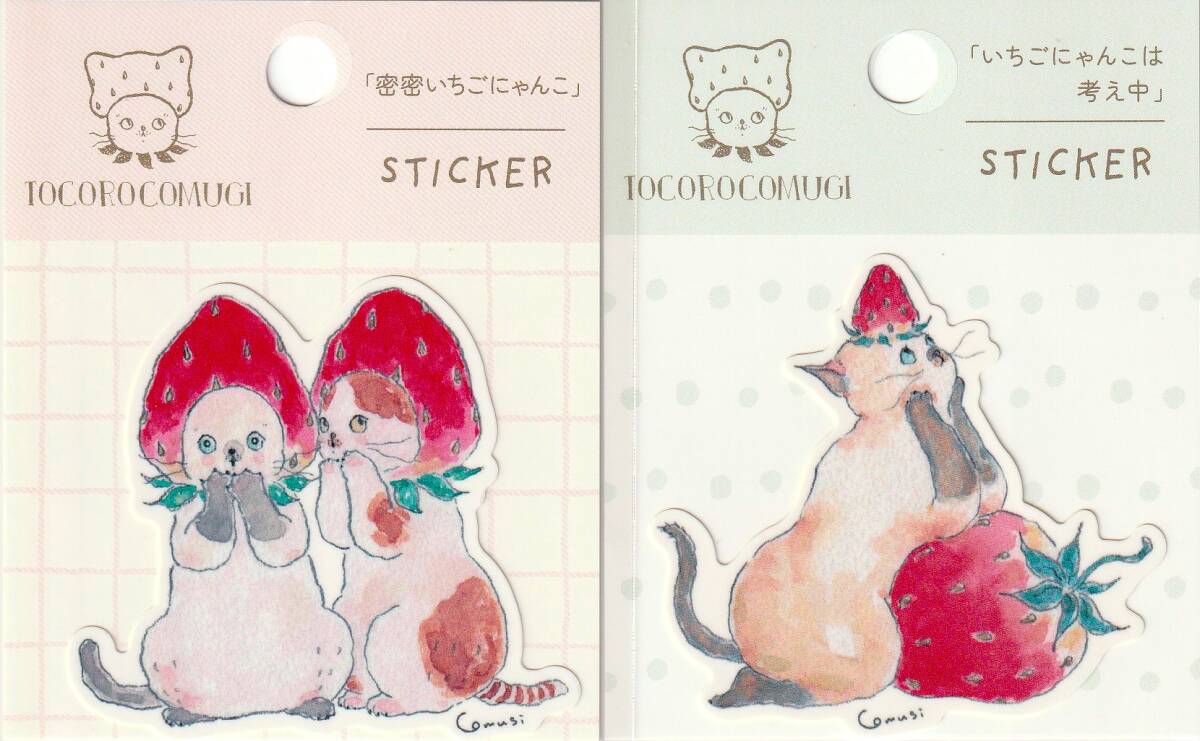 - 猫柄 猫雑貨 猫グッズ トコロコムギ ステッカー 2セット いちごにゃんこ ねこ ネコ キャット