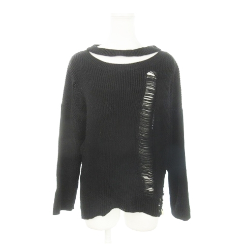 > ディーゼル DIESEL クラッシュダメージニット ラウンドネック 長袖 カットアウトデザイン 小さいサイズ XXS 黒 ブラック /AH8 ■GY01