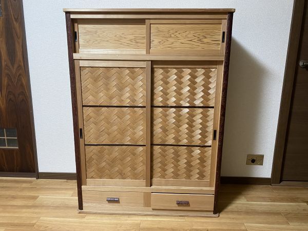 - 【雪華】 茶道具 水屋道具 水屋箪笥【 極上 杉無垢材 置水屋 置き水屋 網代引戸 】 銅落とし 逸品 美品 木目の綺麗