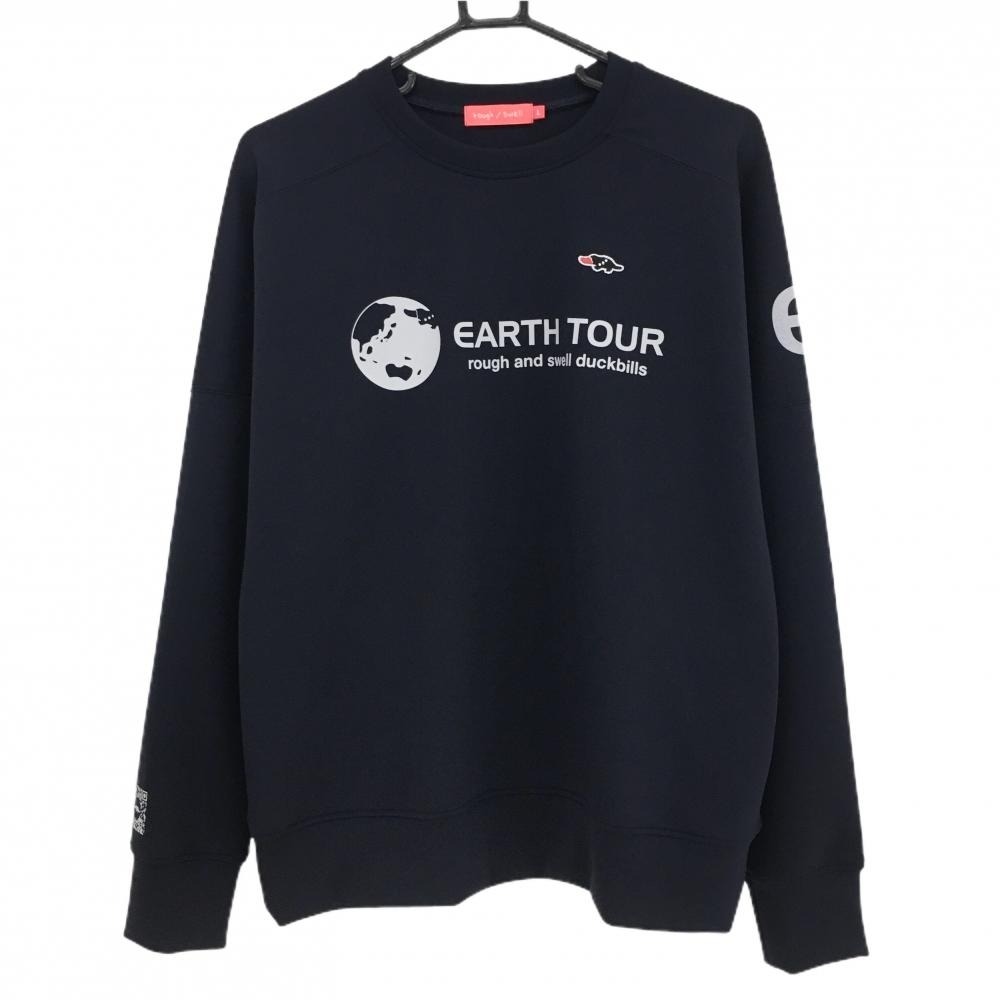 - 【超美品】ラフアンドスウェル トレーナー ネイビー×グレー フロントプリント ダンボールニット レディース L ゴルフウェア rough&swell