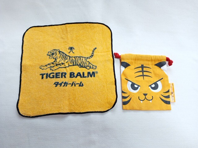 - 龍角散株式会社 タイガーバーム 未使用品巾着袋 タオル地ミニハンカチUSED品