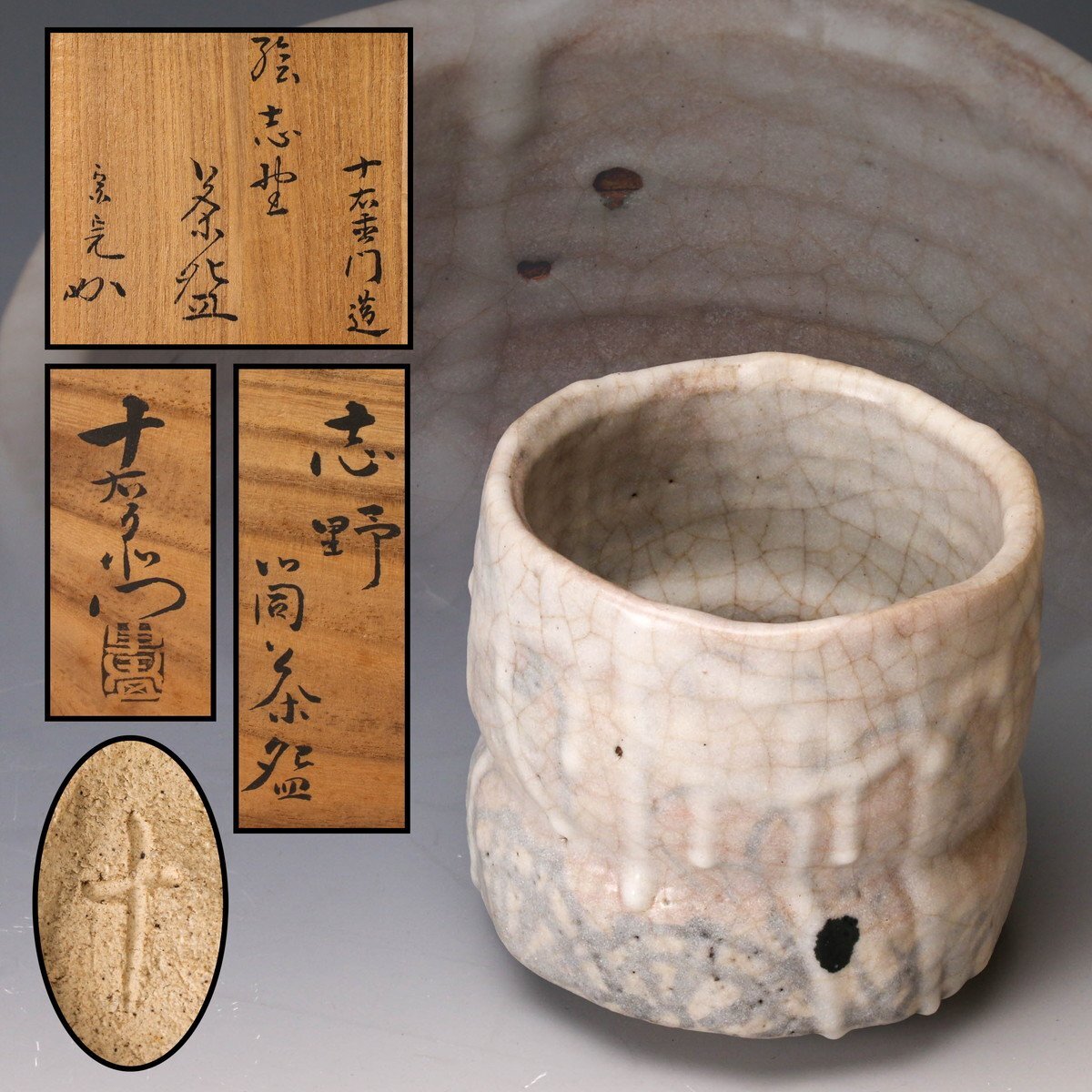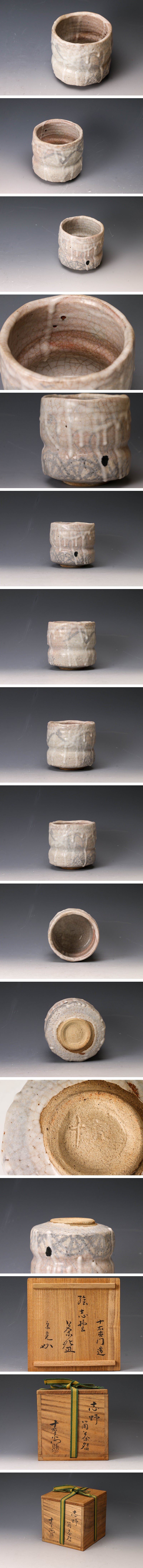 > 【佳香】加藤十右衛門 志野筒茶碗 表千家流長生庵堀内家十二代堀内宗完(兼中斎)書付箱 茶道具 本物保証